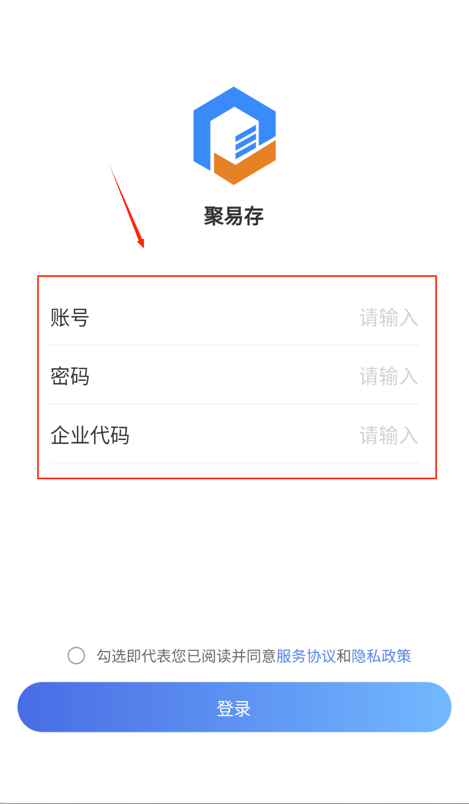 3、登录时需要输入账号密码和企业代码这些信息,记得勾选同意服务协议和隐私政策才能成功登录,要是忘记密码可以通过注册手机号找回哟。
