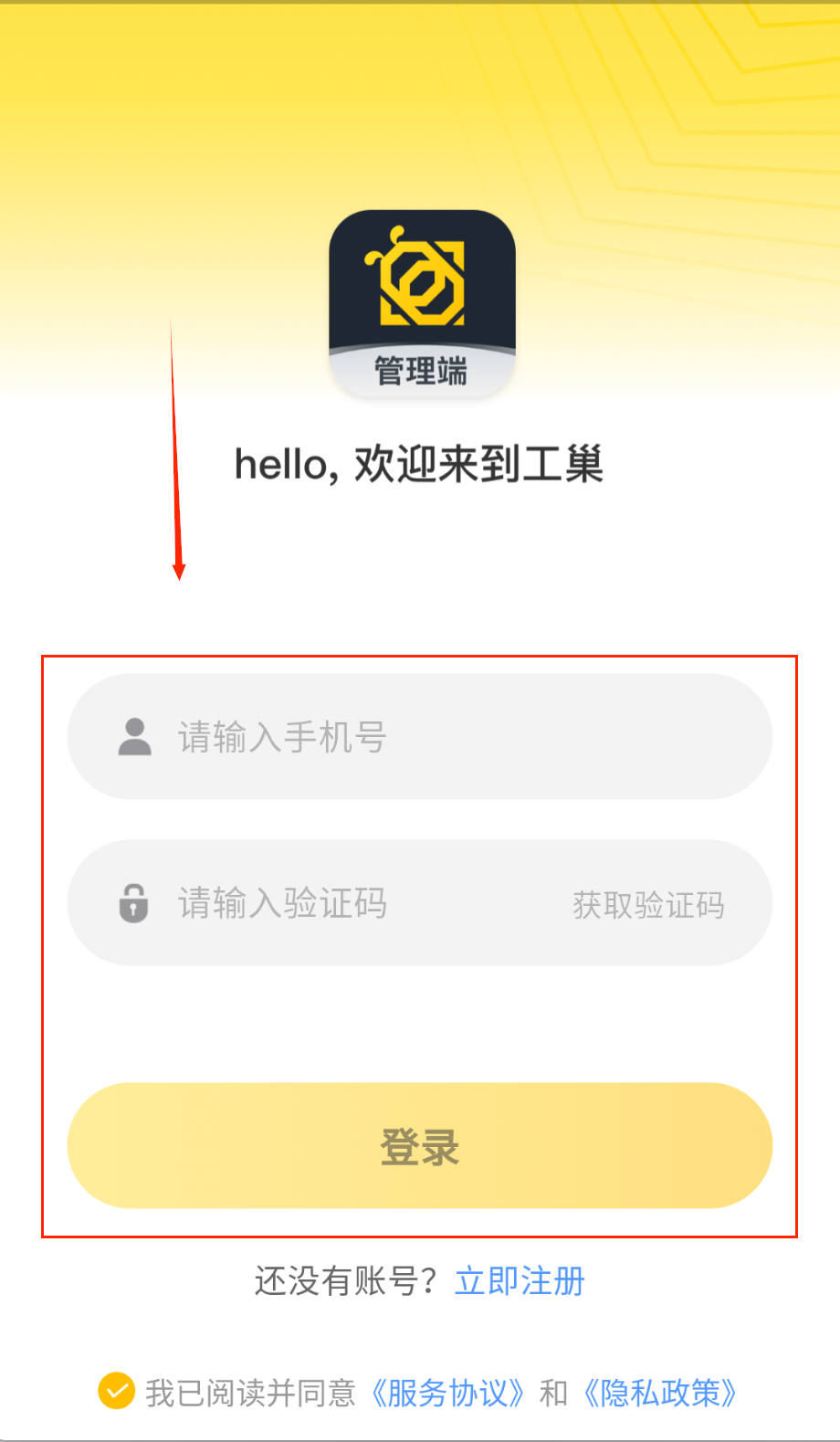 4、将收到的验证码准确输入到验证码框,确认勾选同意协议后,点击黄色登录按钮就能成功进入软件主界面了。