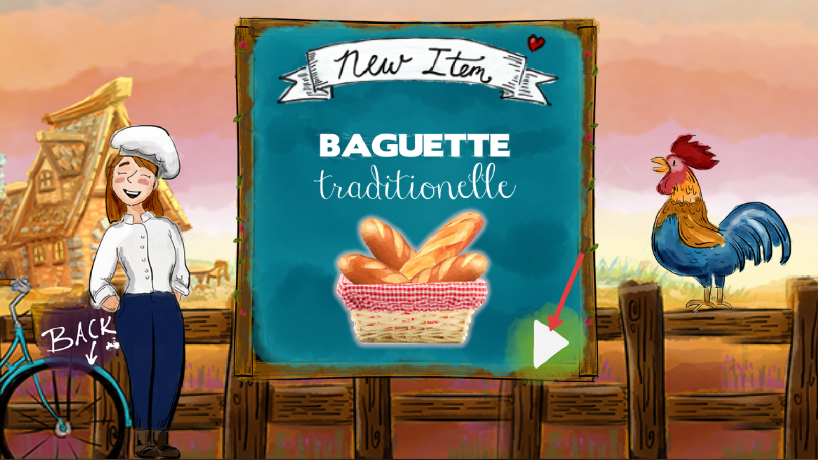 1、开局会解锁新物品【BAGUETTE-traditionelle】,留意提示后即可准备售卖这款传统法棍。