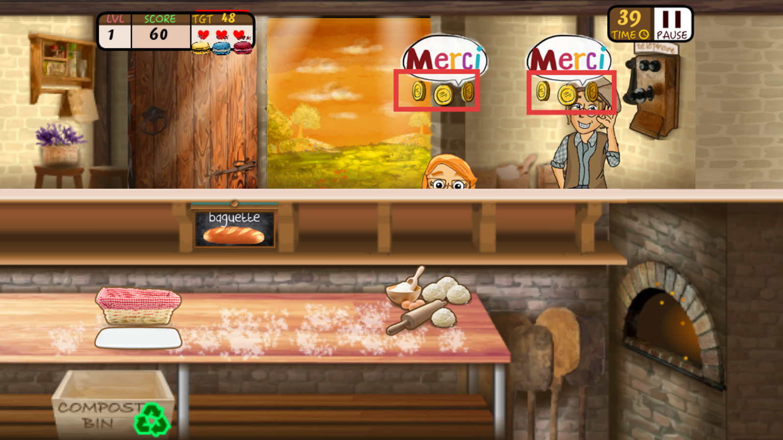 3、成功给顾客提供法棍后,顾客会给出金币作为报酬,多服务顾客就能积累更多金币。
