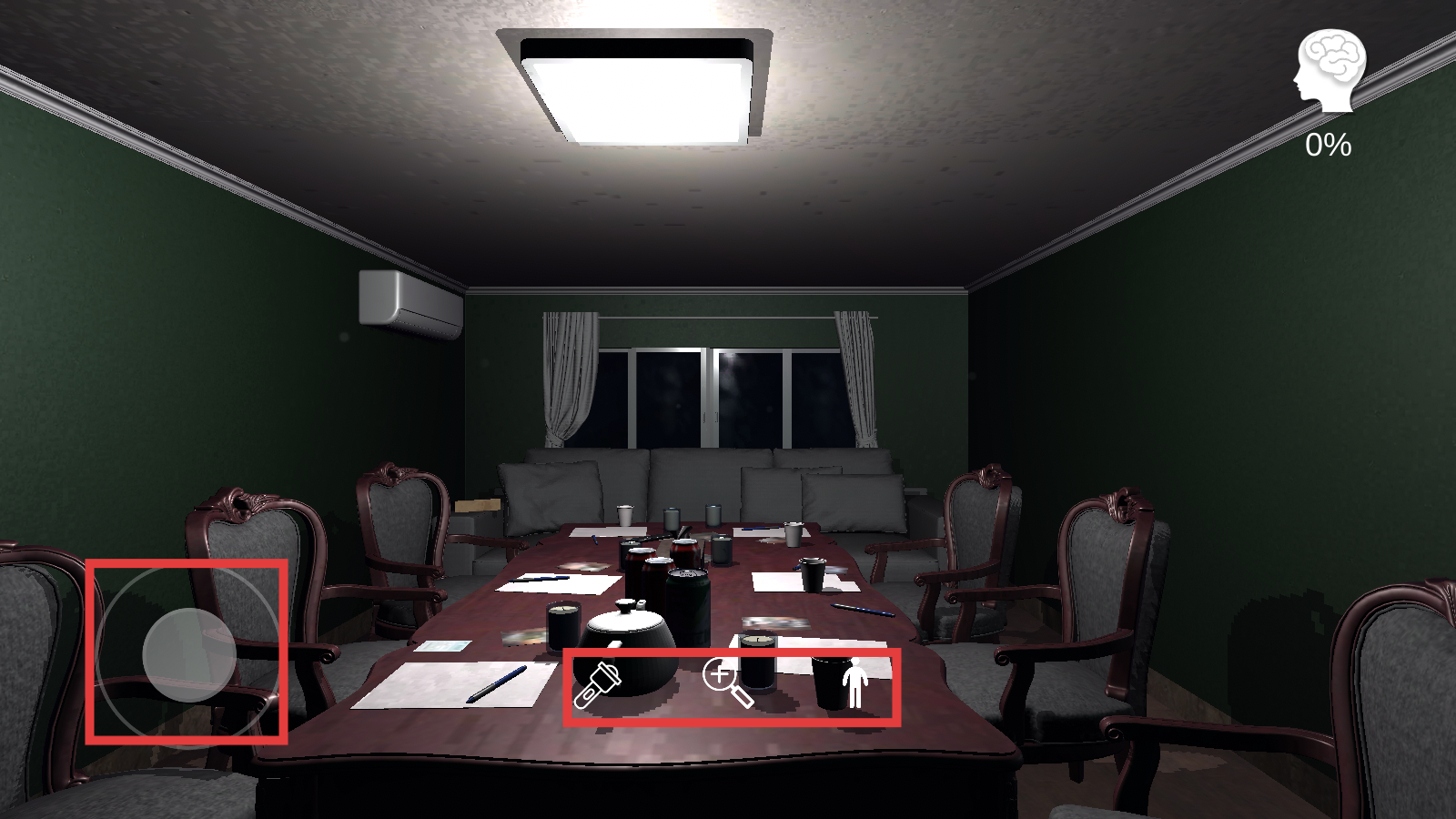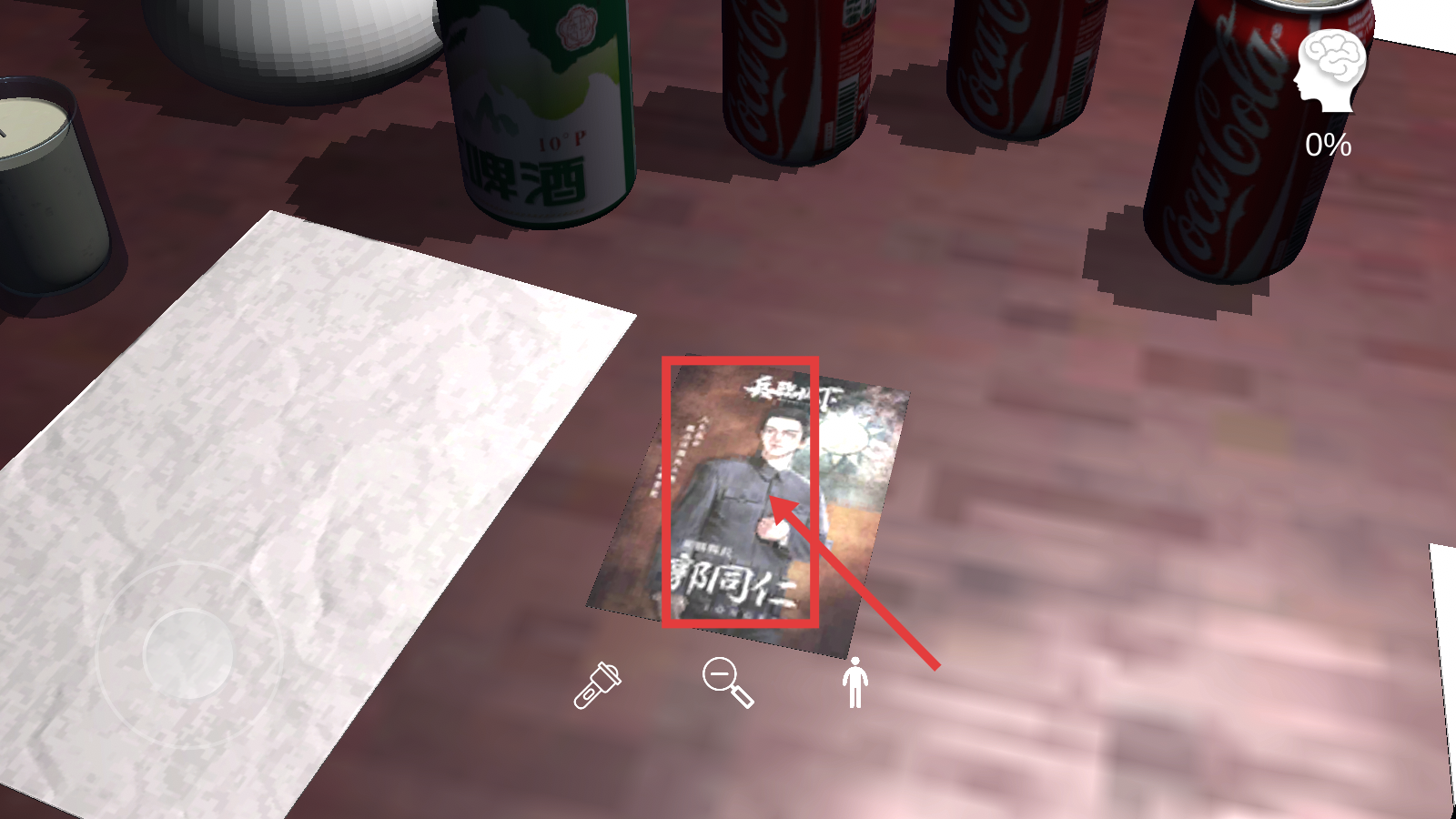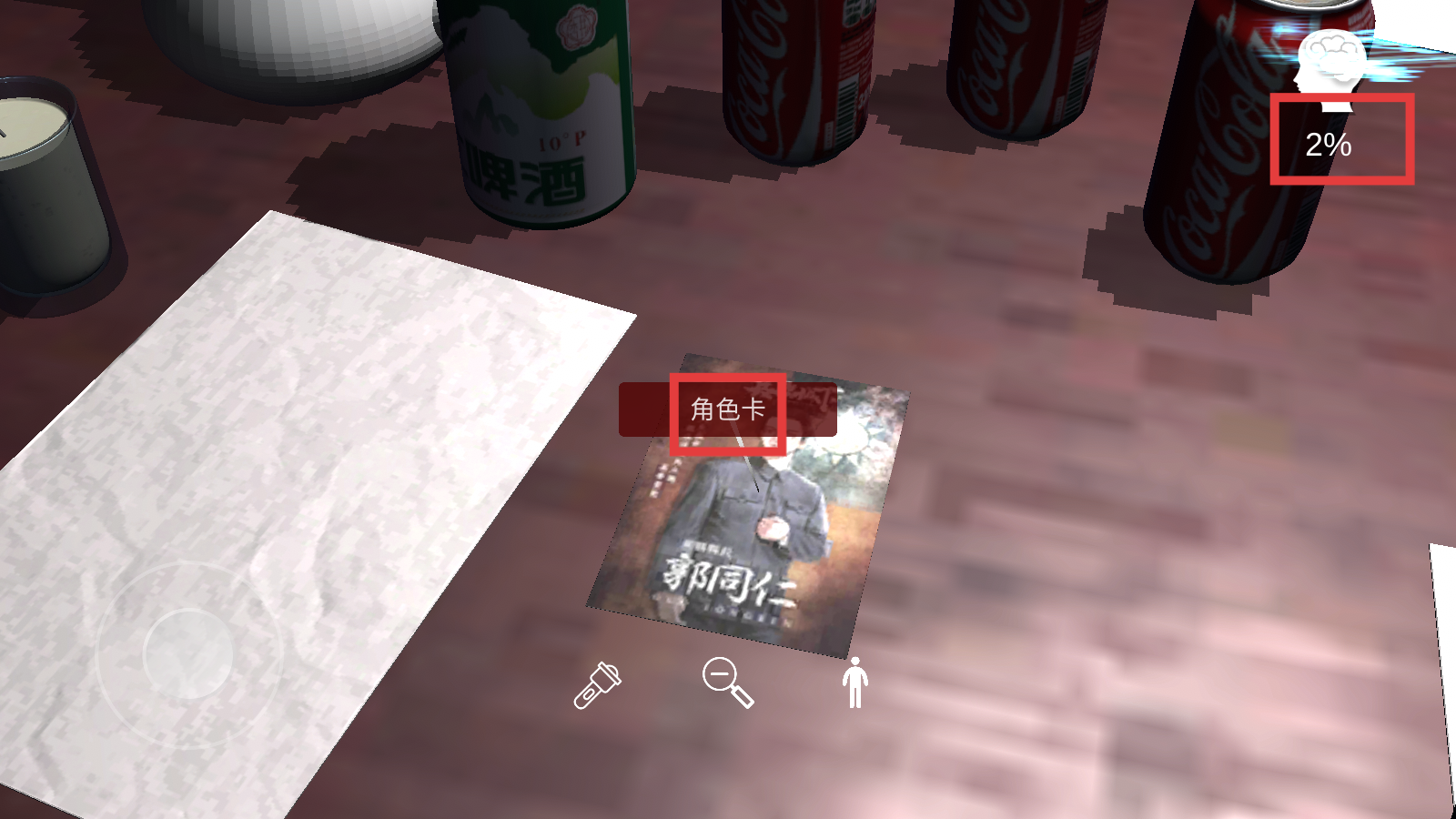 2、在房间探索时,利用左侧操控盘移动,借助【手电筒】【放大镜】等交互功能,仔细查看桌上物品。
