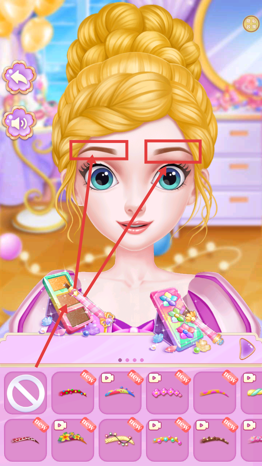 2、在化妆环节,先使用眉部化妆品修饰眉毛,下方还有多种眉饰可选,能打造不同眉形风格。