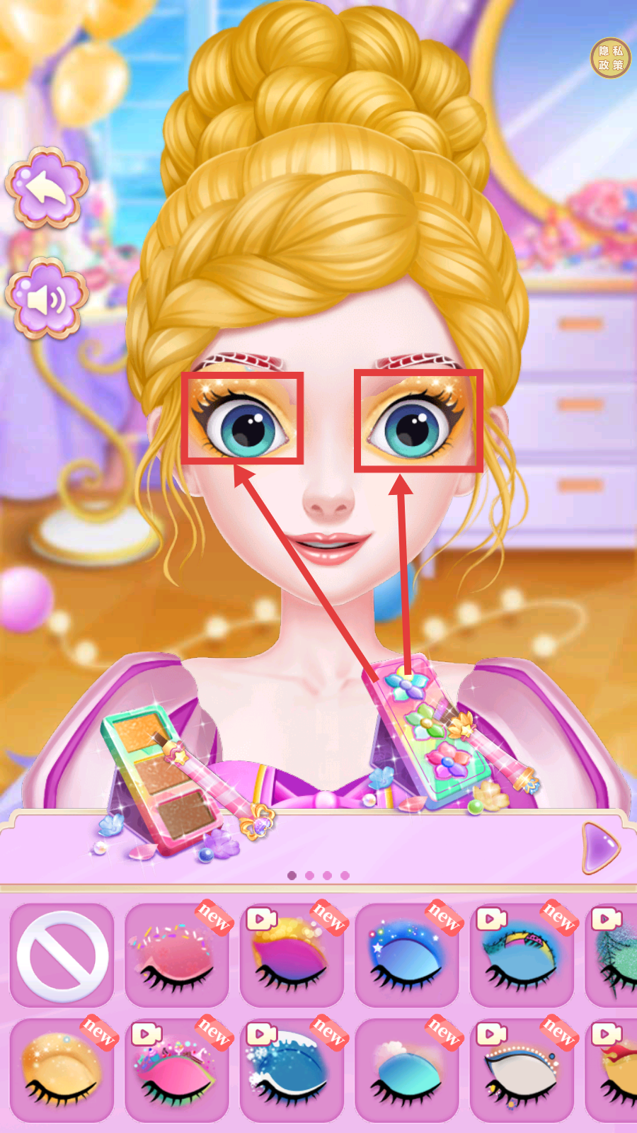 3、接着打造眼部妆容,选择喜欢的眼影等眼部化妆品,为角色眼部增添色彩与层次。