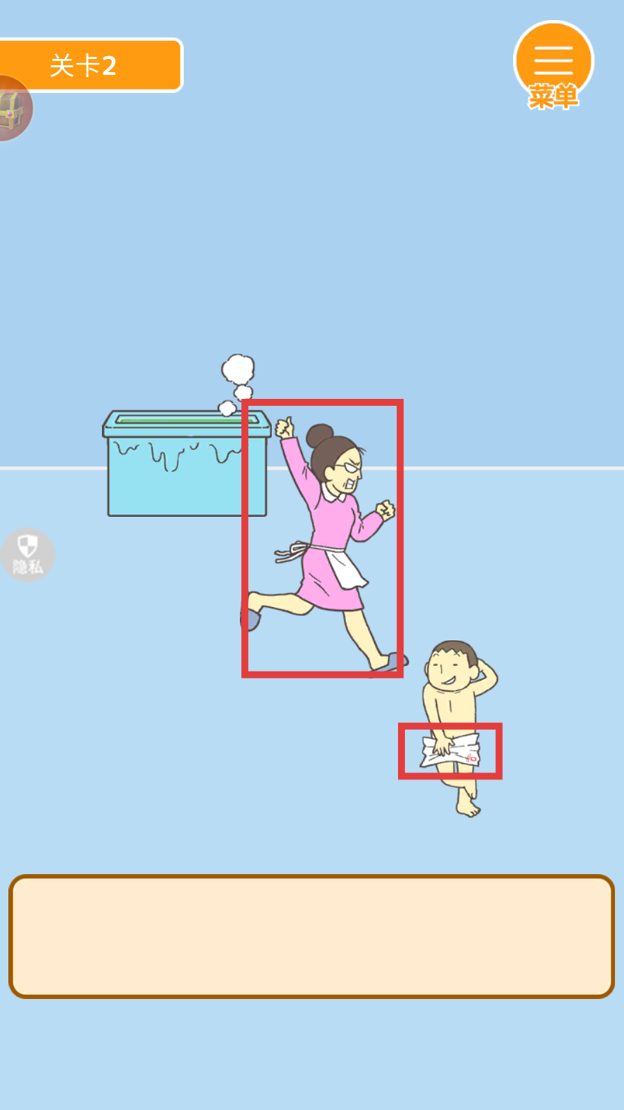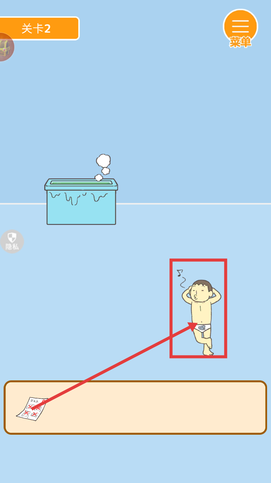 2、在【关卡2】中,观察场景里的泡澡容器与人物,根据提示互动,推进关卡内的情节。