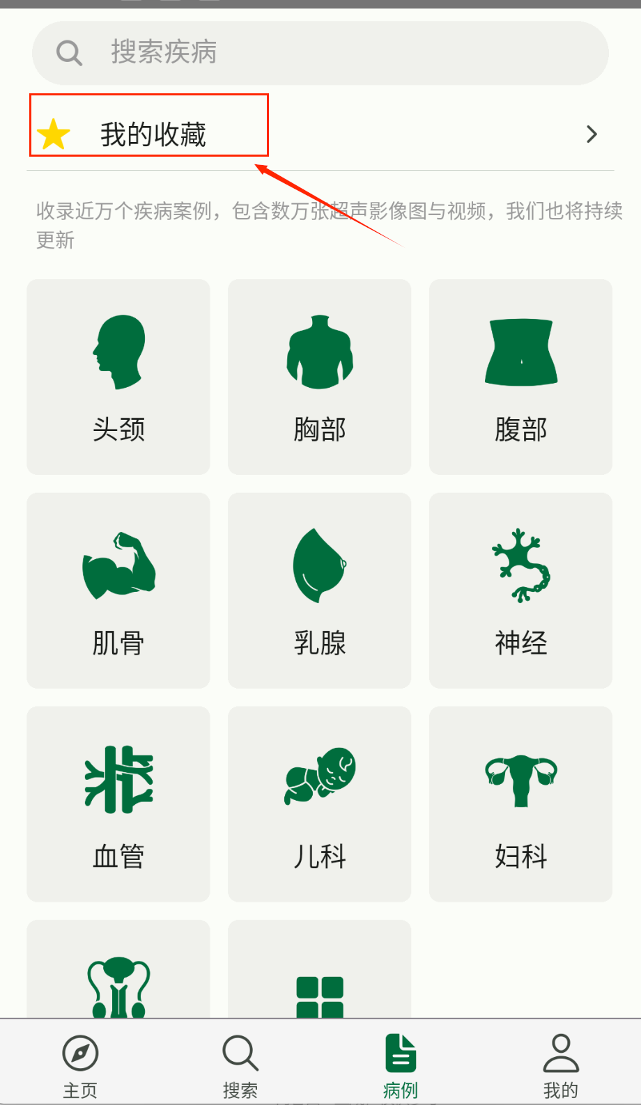 3、遇到有价值的病例可点击收藏按钮保存至个人收藏夹,方便后续反复学习和参考,收藏夹支持分类管理,提升使用效率。