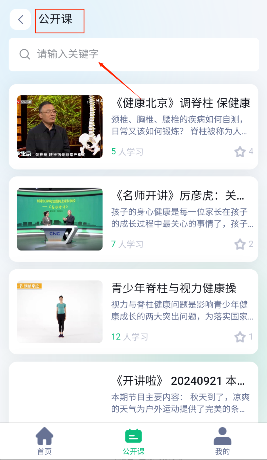 3、进入健康课程板块选择公开课学习,课程涵盖体态矫正、脊柱养护等内容,支持离线下载反复观看,结合图文讲解掌握科学健康知识。