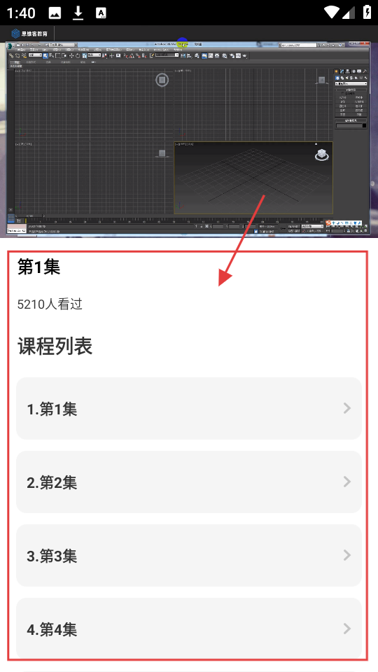 3、进入课程播放页,可看课程视频,还有课程列表,选对应集数,按顺序学习课程内容。