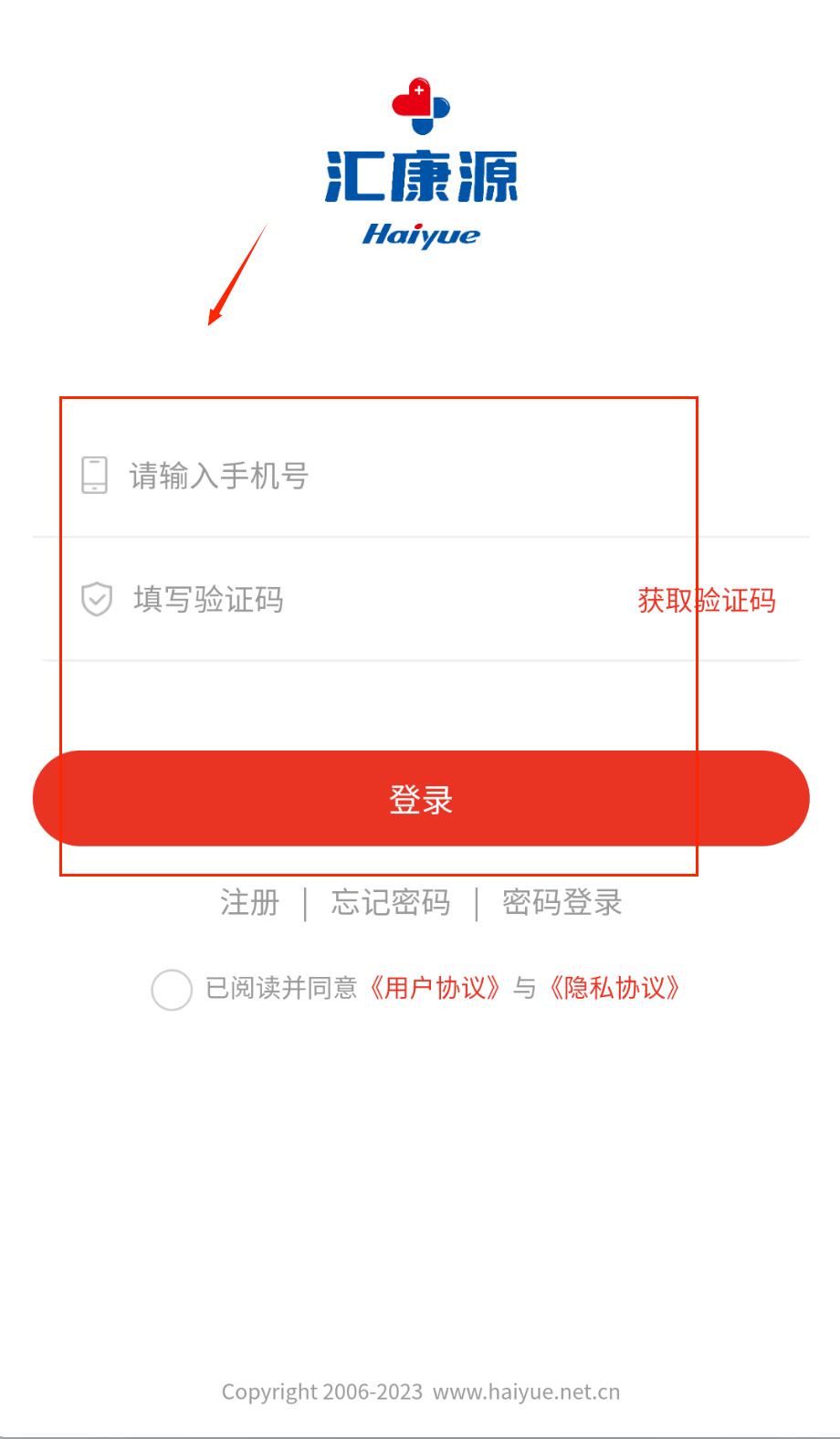 4、验证码登录方式也很简单,输入手机号后点击获取验证码,收到短信后填入验证码框即可快速登录,记得要勾选同意协议选项才能进入软件。