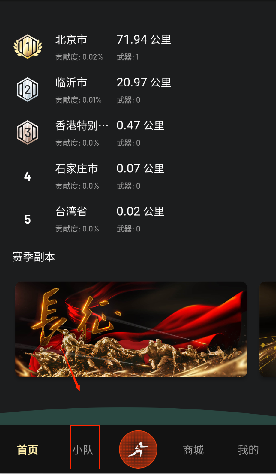 3、创建或加入小队参与城市战力排行,与好友组队完成赛季目标,共同为所在城市争夺全国排行榜荣誉。