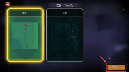 3、如何选择挑战?在挑战界面中点击“选择一项挑战”,再点击“下一步”进入战斗准备。