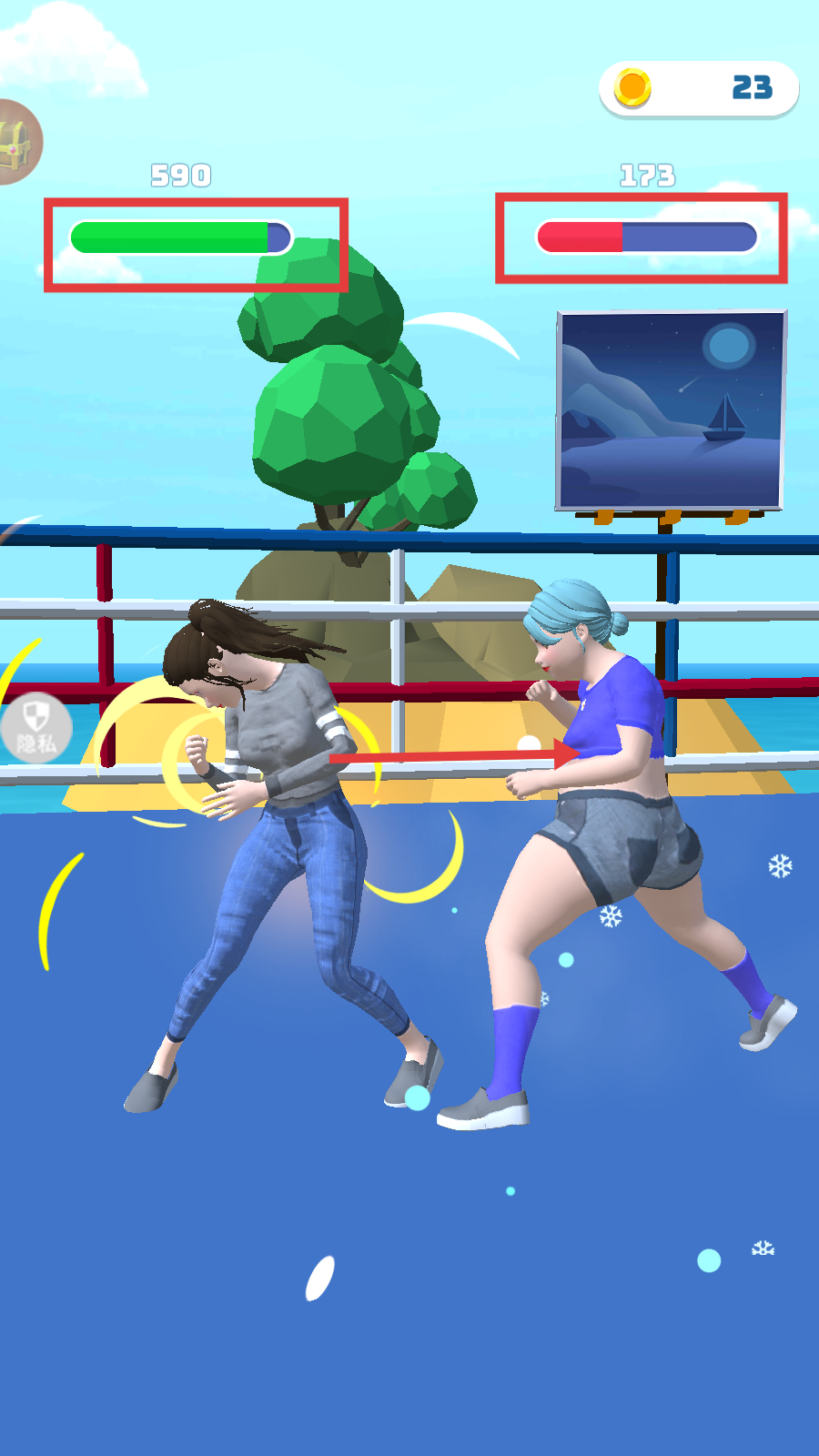 2、拳击对决操作:跑酷结束后快速点击屏幕出拳,根据身材状态调整策略,利用节奏时机击败对手。