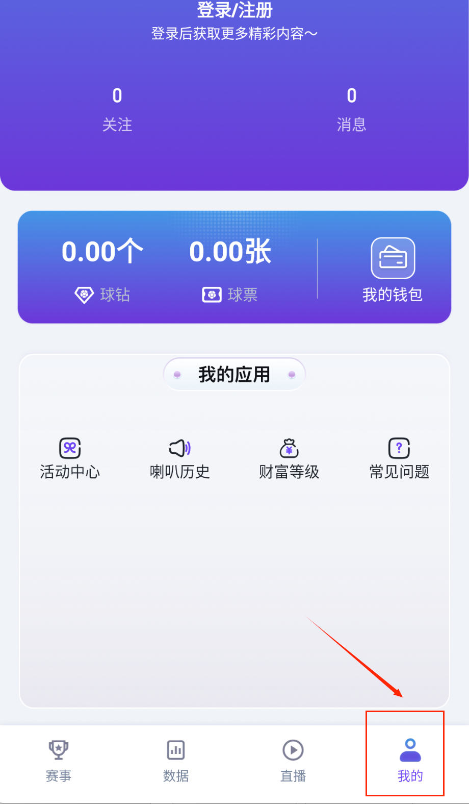 1、打开应用后,在隐私政策弹窗中点击右侧紫色“同意”按钮进入主界面,通过底部导航栏选择“直播”选项即可浏览各类赛事内容。