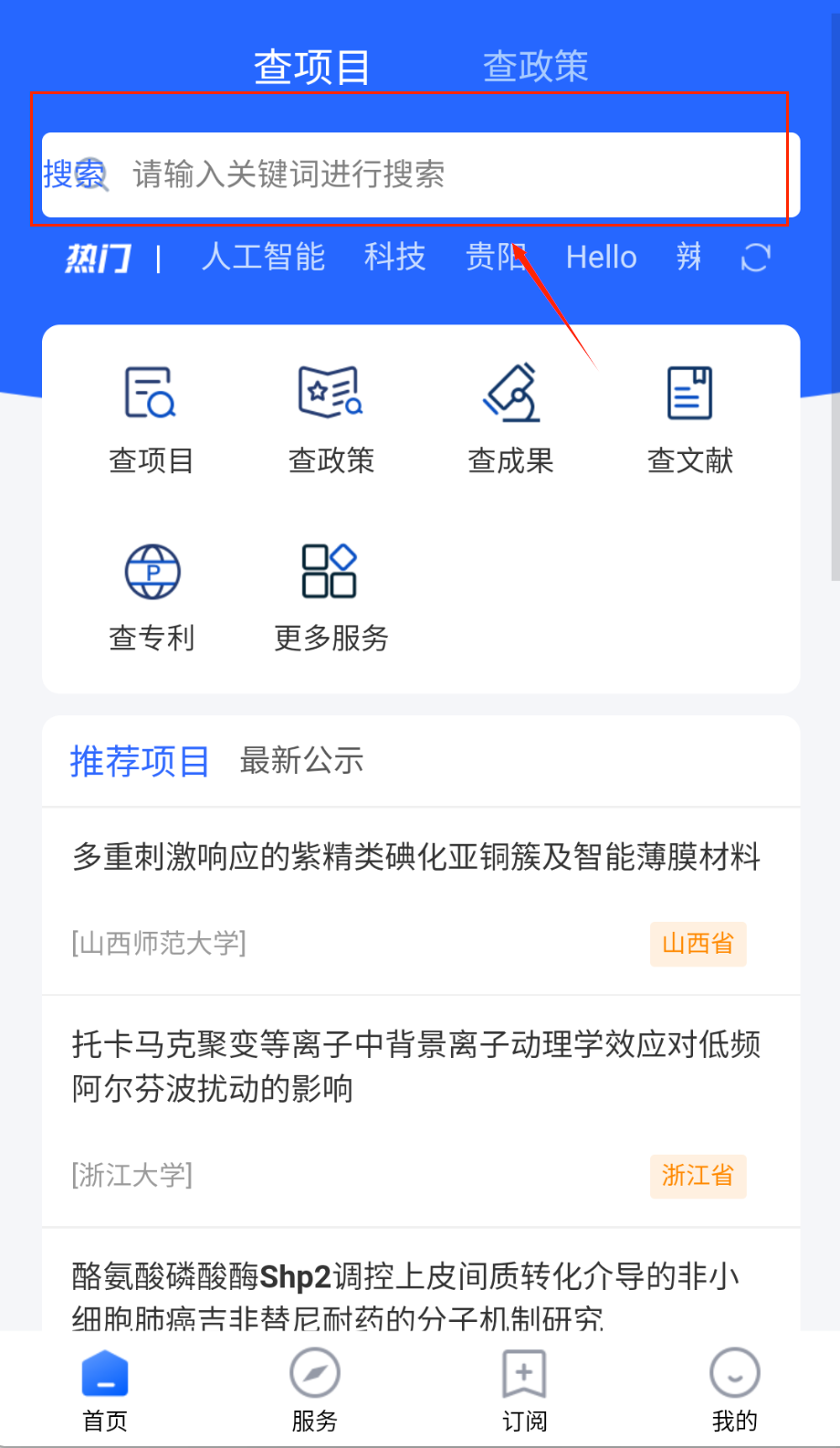 1、项目查询模块收录国家级、省部级科研项目详情,包含经费、团队、进度等20余项关键信息,支持相似项目推荐。