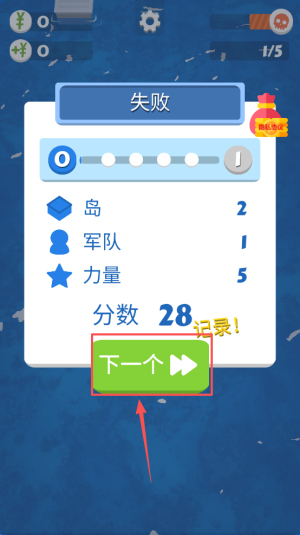 4、最后,完成关卡后点击“下一个”按钮继续游戏或重新开始。