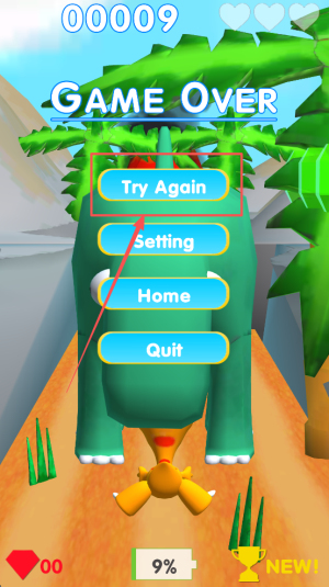 3、然后,如果遇到游戏结束,可以选择“Try Again”重新挑战或“Setting”调整设置。