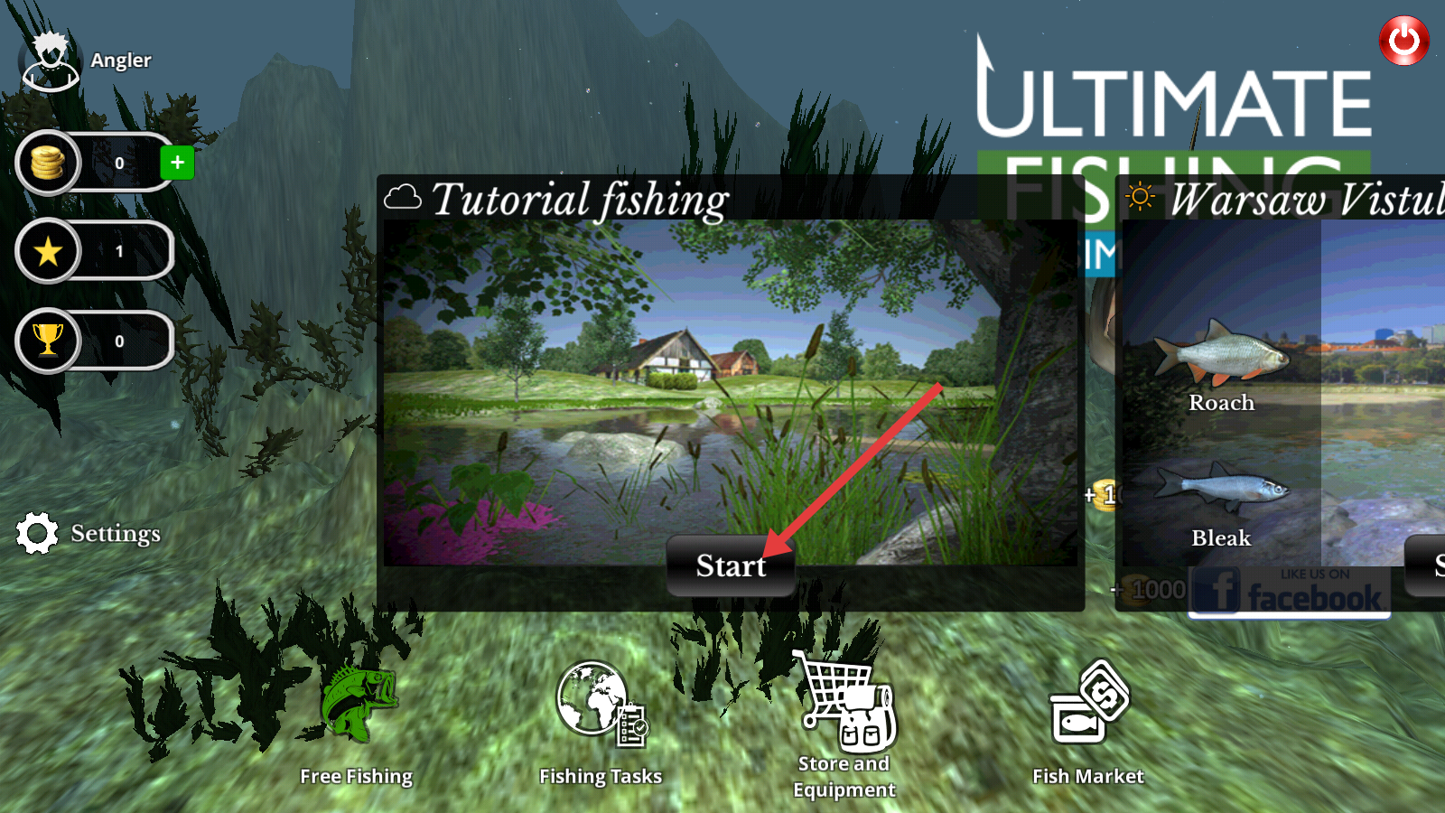 1、进入游戏后,找到【Tutorial-fishing】对应的【Start】按钮,点击它开启钓鱼教程,熟悉基础流程。