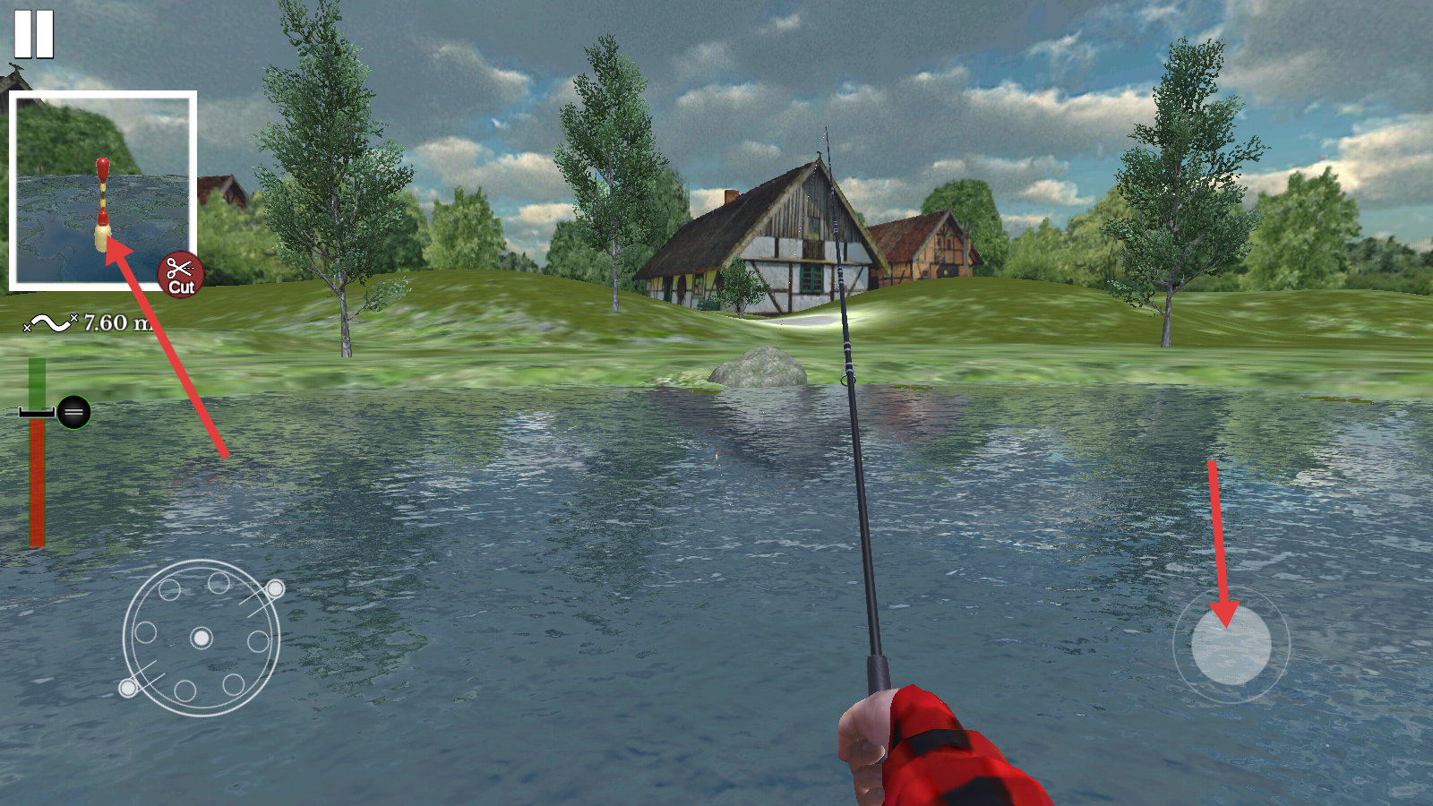 2、钓鱼时留意浮标动态,看到浮标有动静,及时点击右侧圆形操作区域,触发提竿动作。