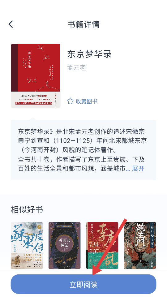 2、在全部图书页,选心仪的书籍,如【东京梦华录】,进入书籍详情页,查看书籍介绍等信息。