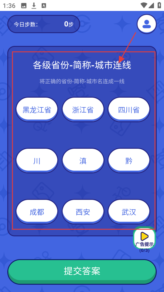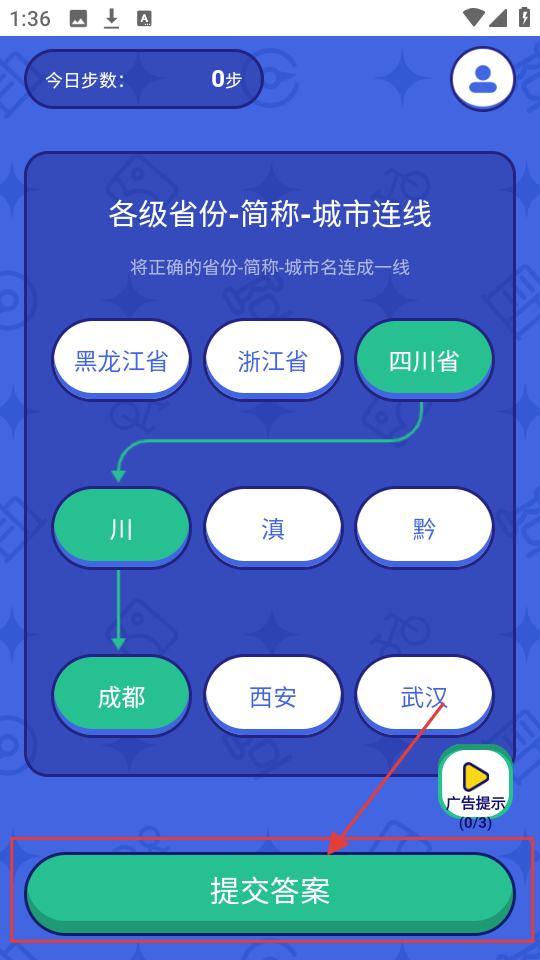3、完成省份、简称、城市的连线后,点【提交答案】,查看答案是否正确,等待结果反馈。