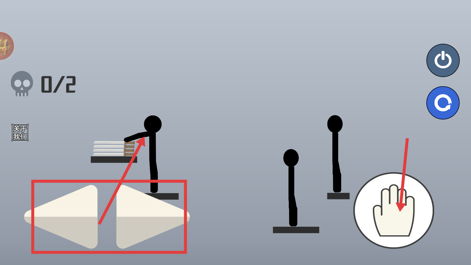 2、借助左侧方向键移动火柴人,靠近武器后点击右侧区域,即可拾取武器准备战斗。