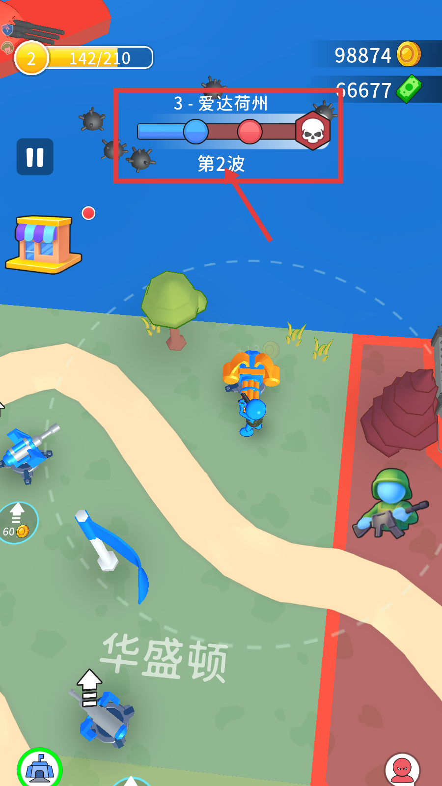 4、关注关卡进度,如【3-爱达荷州】的波次提示,第2波敌人到来前做好防御准备,应对后续挑战。