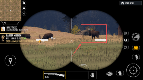 2、如何选择狩猎模式?在主菜单点击“CAREER”进入职业模式,或选择“FREE HUNT”“HELI HUNT”等体验不同玩法。