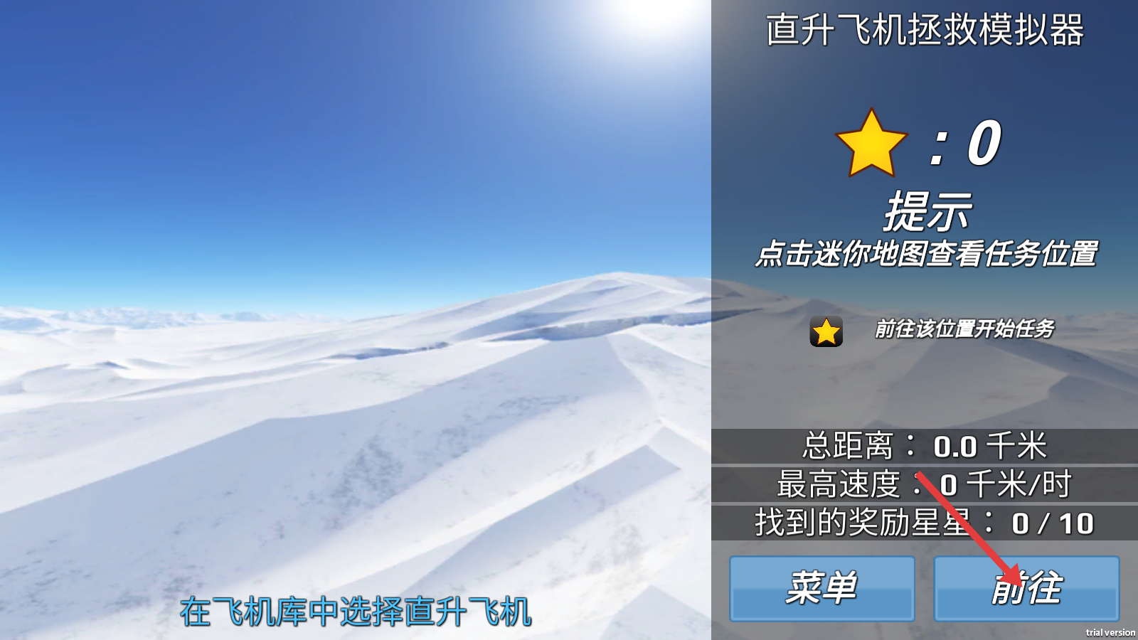 1、进入【直升飞机拯救模拟器】,点击“前往”按钮,开启任务挑战。