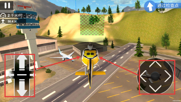 2、操控直升机时,利用左侧上下键和右侧方向键,控制直升机的移动方向与高度。