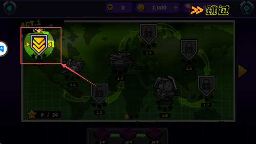 2、如何查看关卡进度?点击“0/24”可展开关卡列表,再次点“跳过”可直接进入已解锁关卡。