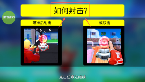 2、如何开火?依照提示“瞄准后射击或双击”,点击屏幕任意处完成开枪动作。