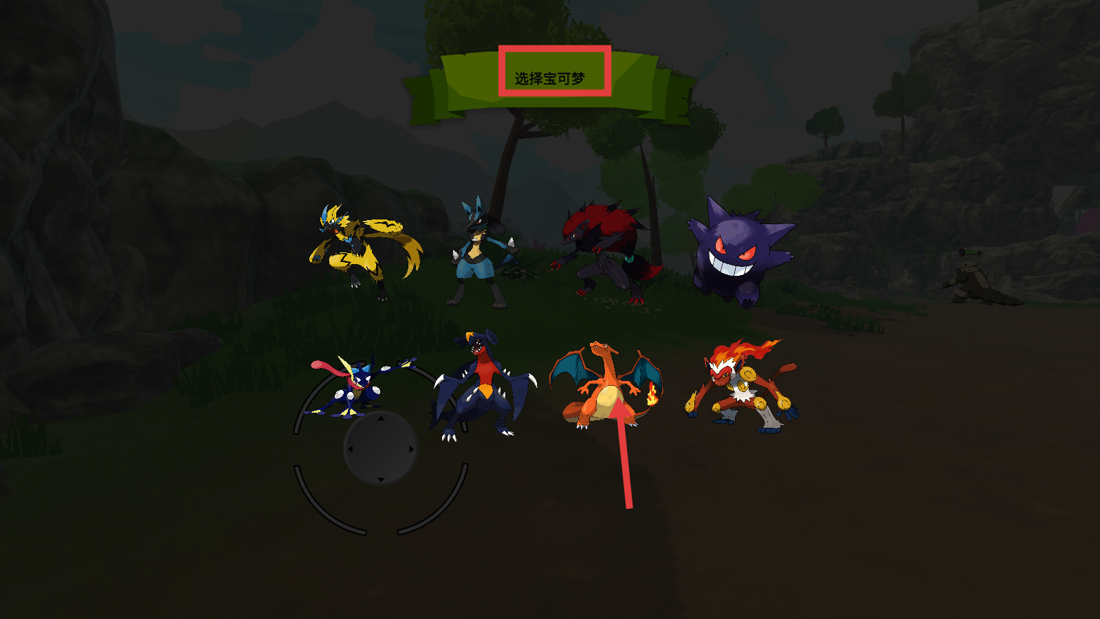 1、进入游戏先在【选择宝可梦】界面挑选心仪的宝可梦,像喷火龙这类攻击型宝可梦能为前期战斗助力。