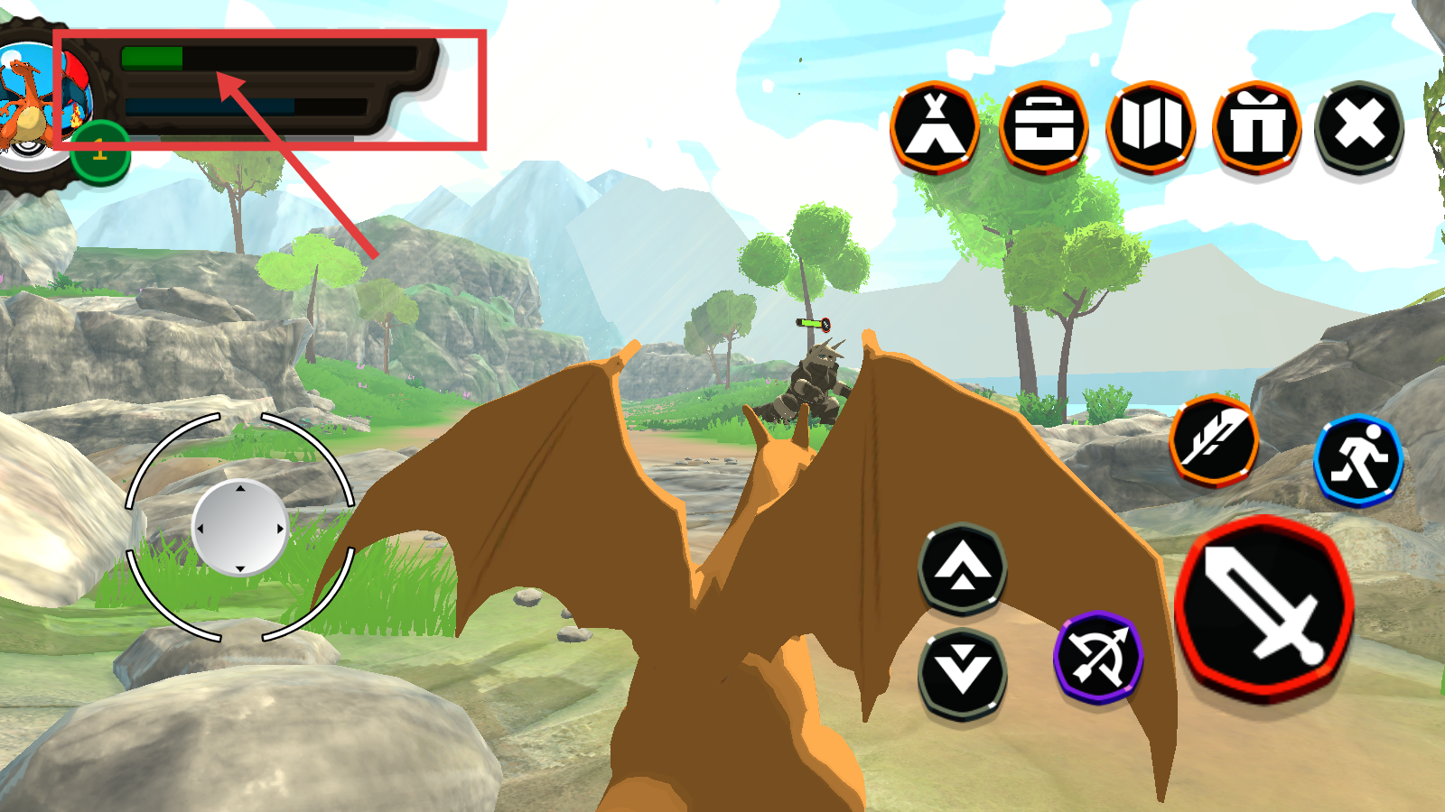 2、操控宝可梦时,用左侧摇杆控制移动方向,可灵活在场景中探索或调整战斗位置。
