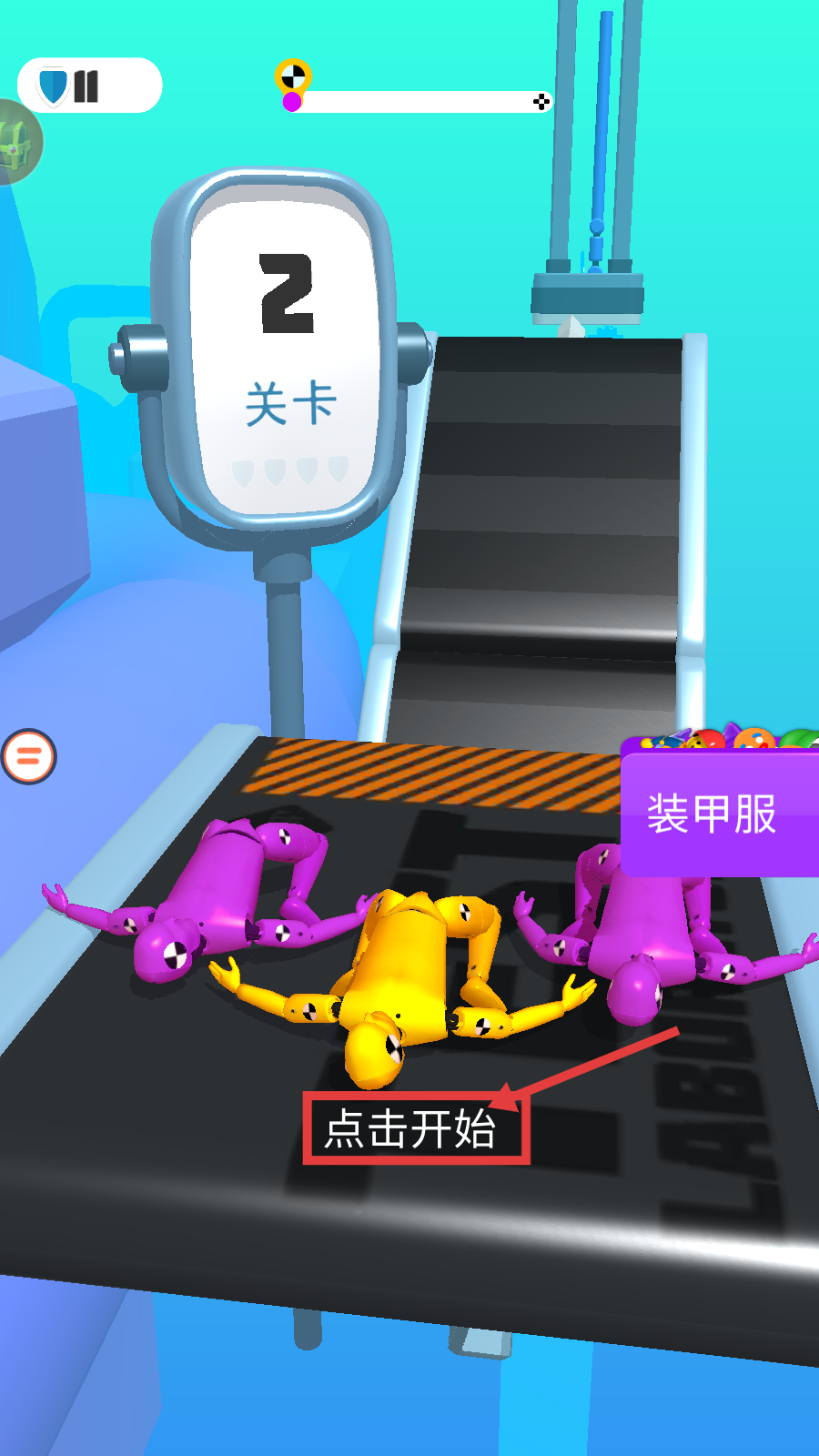1、进入【关卡-2】后,点击【点击开始】开启挑战,可留意【装甲服】相关元素,为通关助力。