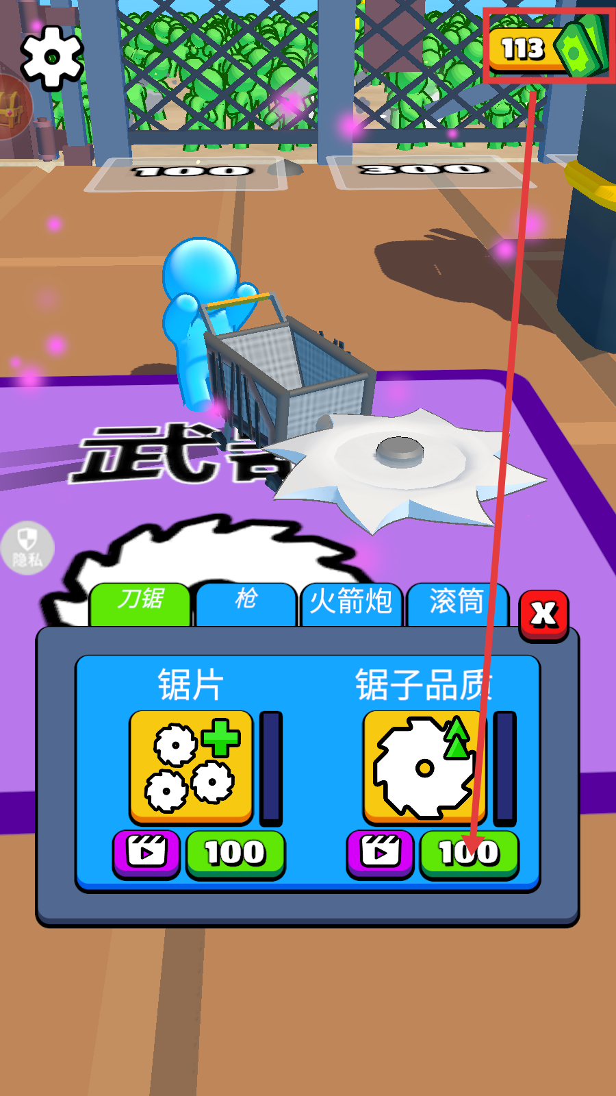 3、花费货币提升武器,比如在【武器】界面升级锯片数量或锯子品质,增强武器的作战能力。