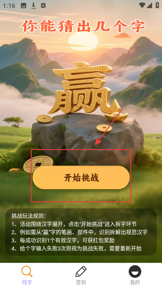 一款融合汉字挑战与红包奖励的趣味软件。