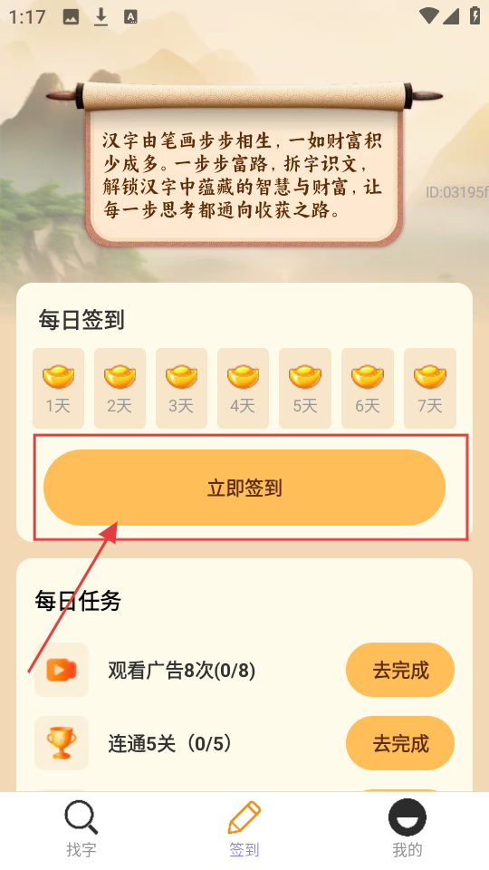 4、到签到页,有每日签到板块,点【立即签到】,完成签到,还可做每日任务获取奖励。