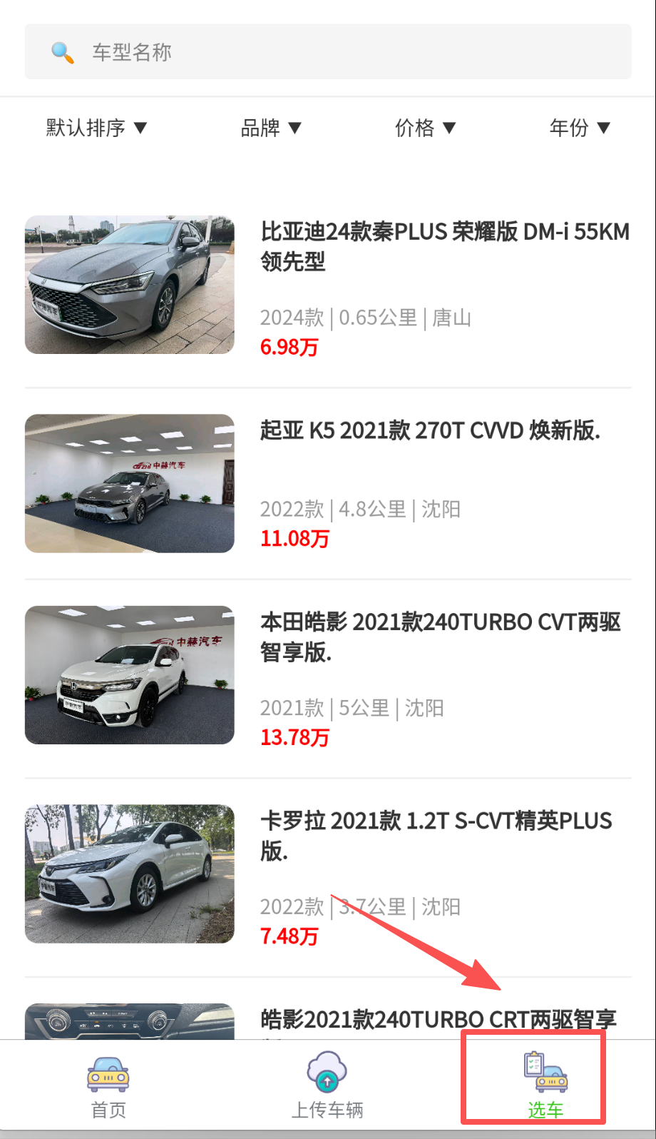 1、 登录后进入"车辆搜索"输入品牌或型号关键词,系统实时匹配在库车源,支持按年份/价格/车况等多维度筛选,点击查看高清实拍图。