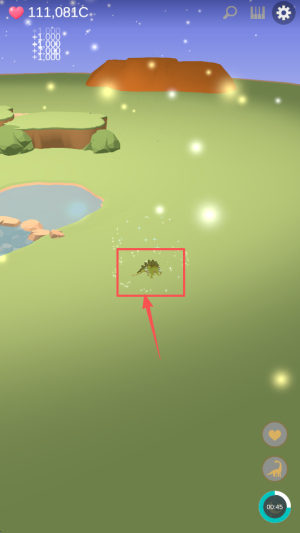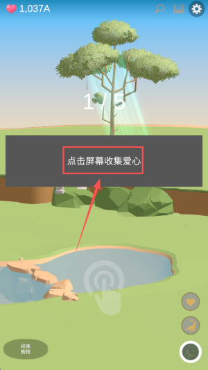 2、接着,通过点击屏幕收集爱心,用于进化恐龙。