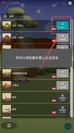 3、然后,使用收集到的爱心在商店中购买或进化恐龙。
