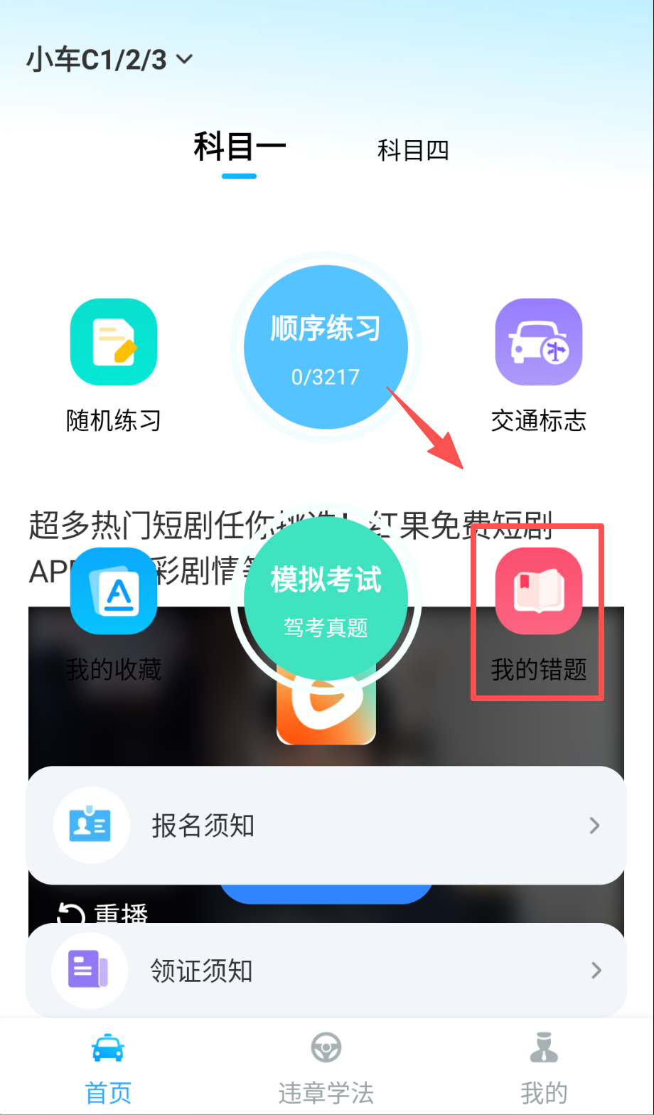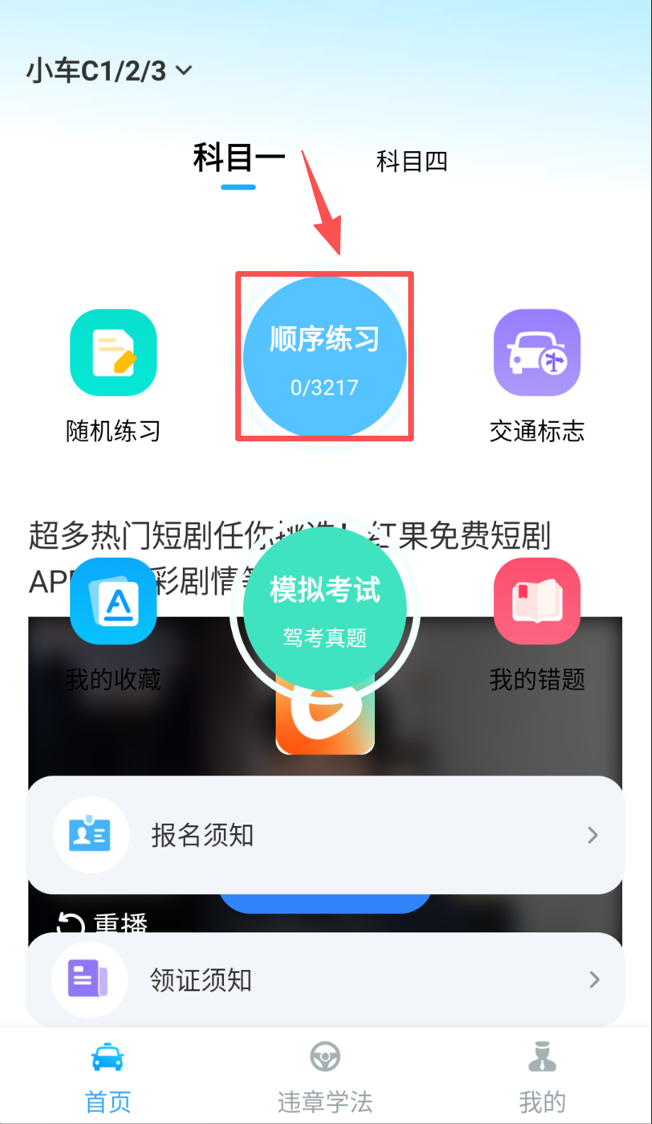 1、 登录后进入"题目练习"板块,选择科目分类或专项训练(如信号灯、处罚规则),逐题作答后查看详细解析,易错题自动收藏至错题本。