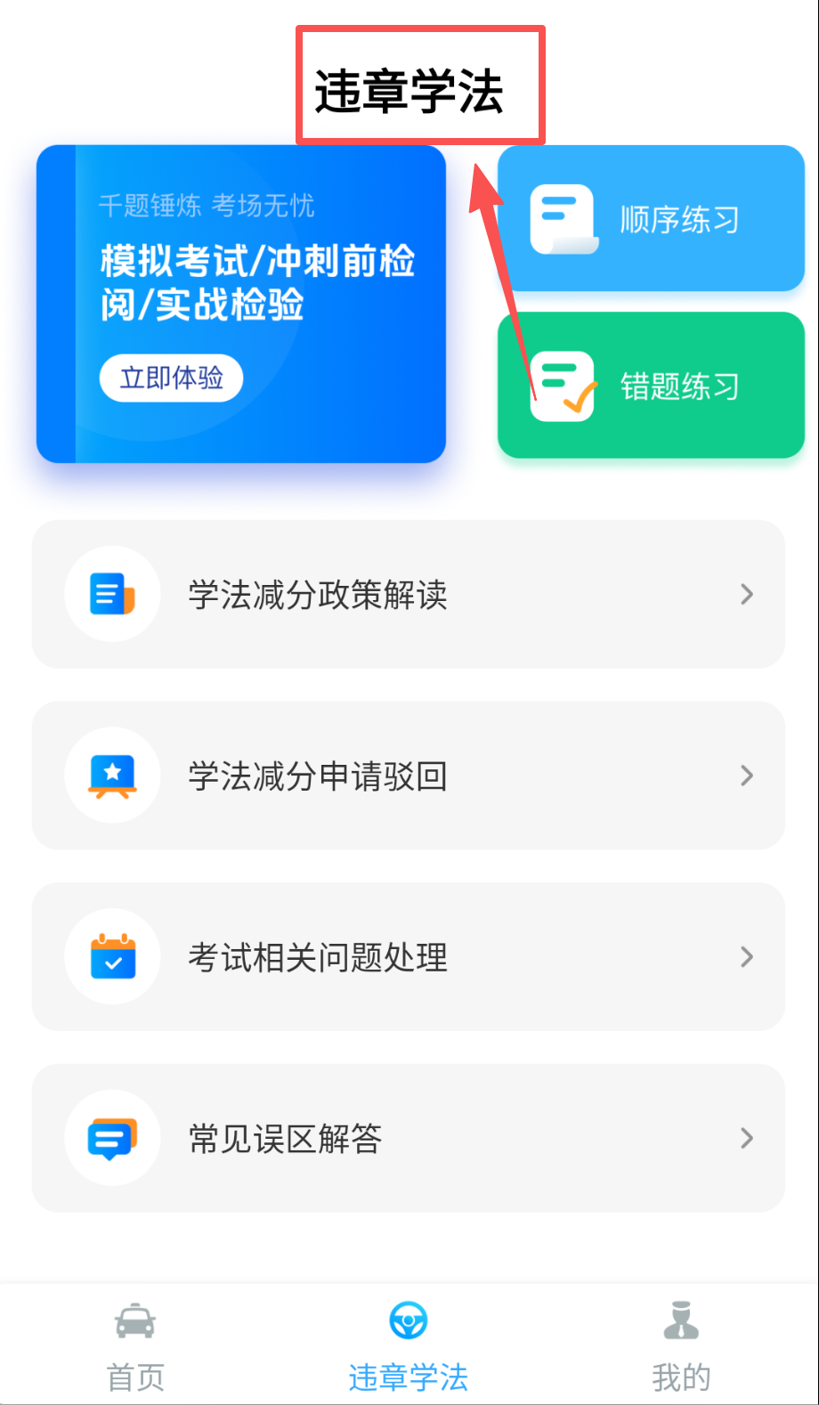 4、 学法减分政策解读模块拆解6大类违章处理流程,配套情景选择题帮助理解扣分逻辑,提升实际道路驾驶规则应用能力。