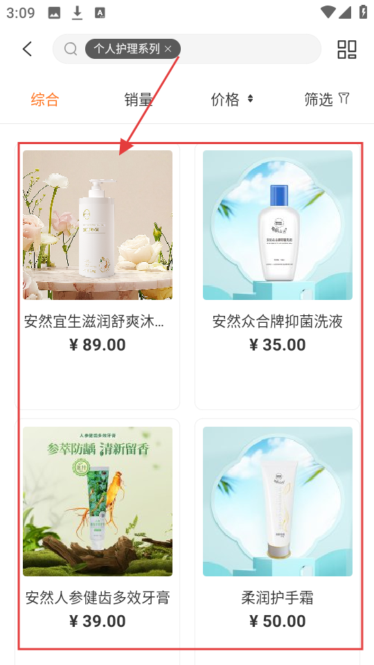 3、在个人护理系列商品页,有多种个人护理商品,选感兴趣的商品,进入商品详情页。