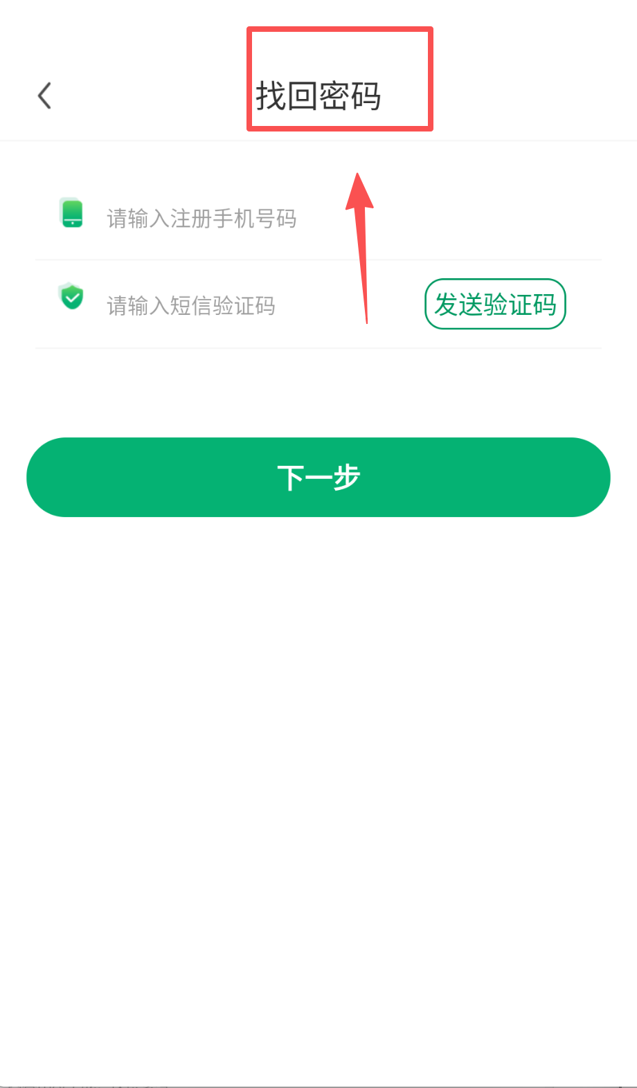 3、 万一忘记密码别着急,在登录界面点“找回密码”。输入你注册时用的手机号码,点击“发送验证码”,手机会收到验证码短信。