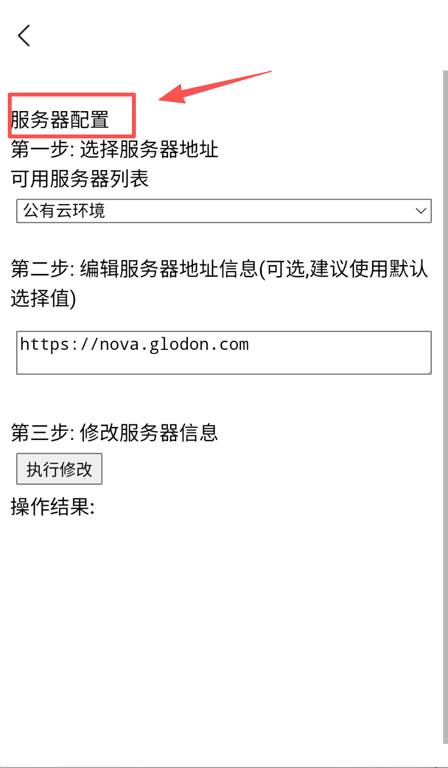 1、 配置服务器地址很简单哟,打开软件找到服务器配置界面,第一步在下拉菜单里选好“公有云环境”这个常用选项,第二步地址栏默认是。