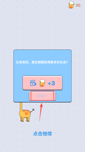 4、最后,当生命用完时,可以选择是否购买更多生命继续游戏。
