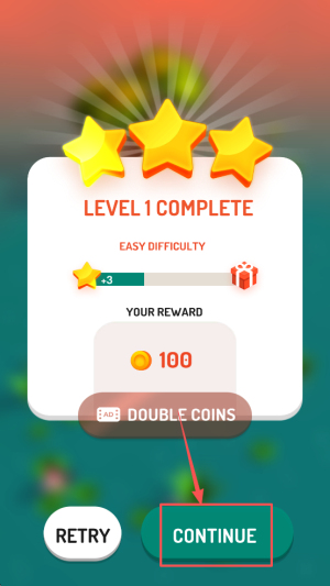 4、最后,领取奖励并继续,完成关卡后点击“CONTINUE”领取奖励并进入下一关。