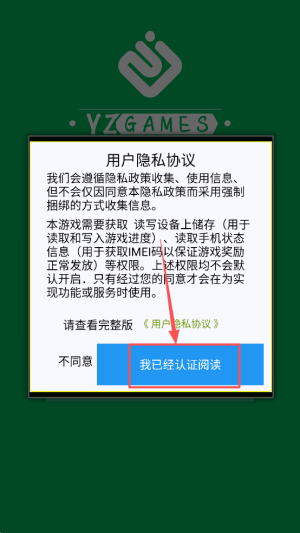 1、首先,阅读并同意用户隐私协议,点击“我已经认证阅读”按钮继续。