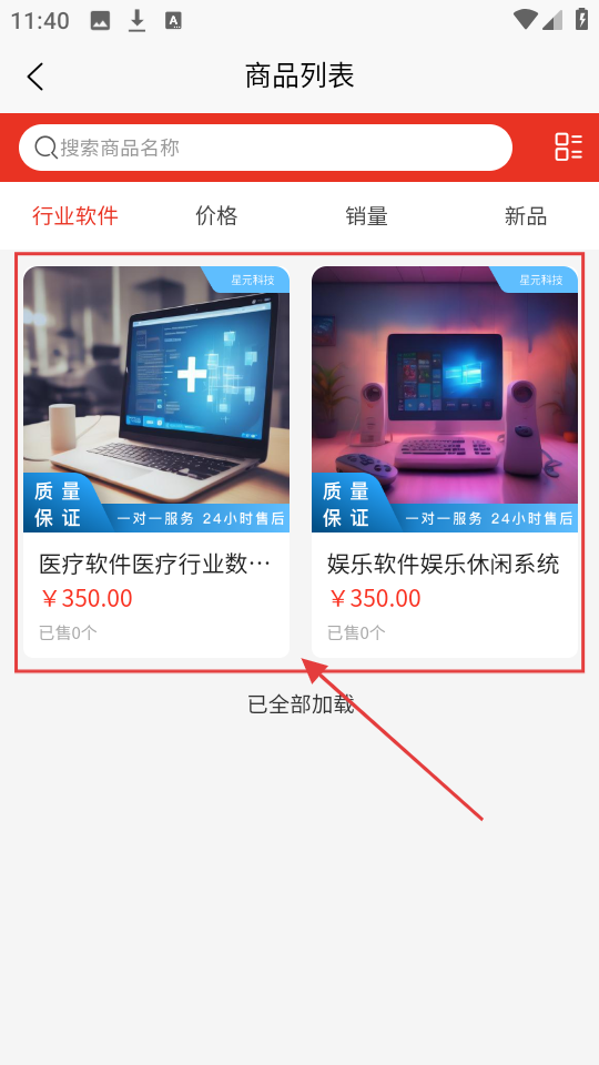 2、在商品列表页,有医疗软件、娱乐软件等商品,选感兴趣的商品,进入其详情页。