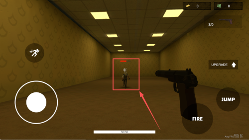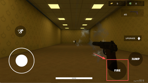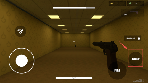2、如何基础移动射击?进入场景后按“JUMP”跳过障碍,同时点击“FIRE”即可边移动边射击。