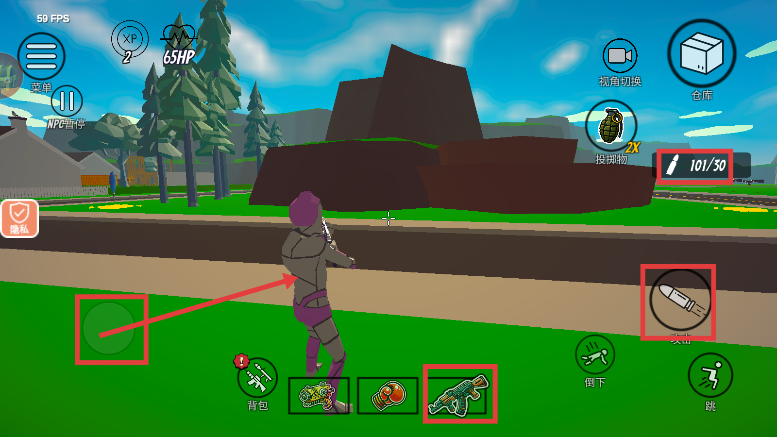 2、利用左侧摇杆控制角色移动,选择武器后,点击右侧【攻击】按钮,可发起基础射击。